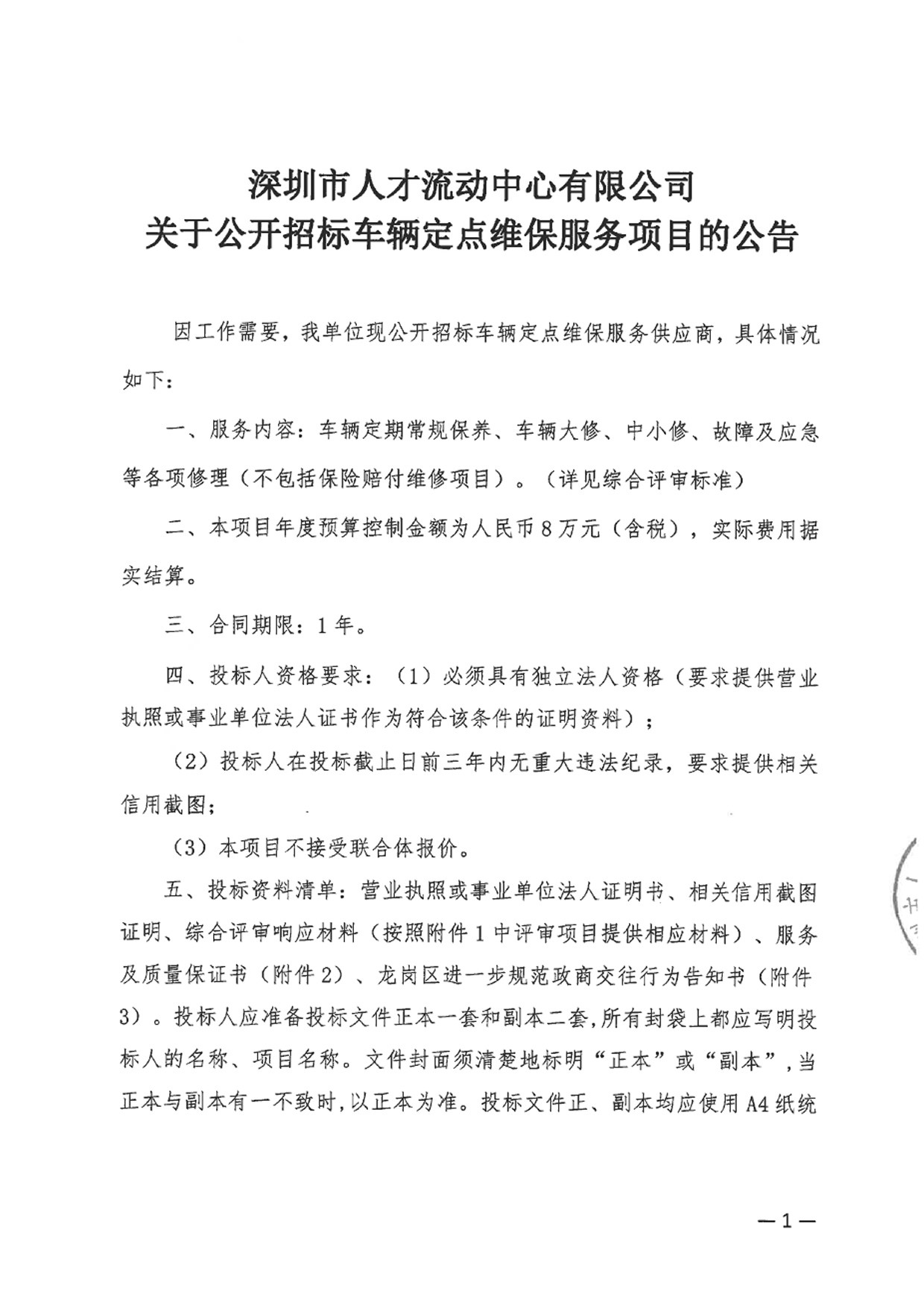 2024-2025年人才公司车辆定点维保服务项目采购公告