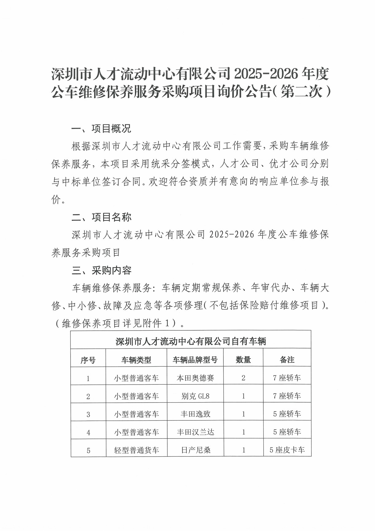 深圳市人才流动中心有限公司2025-2026年度车辆维修保养服务采购项目询价公告(第二次).pdf